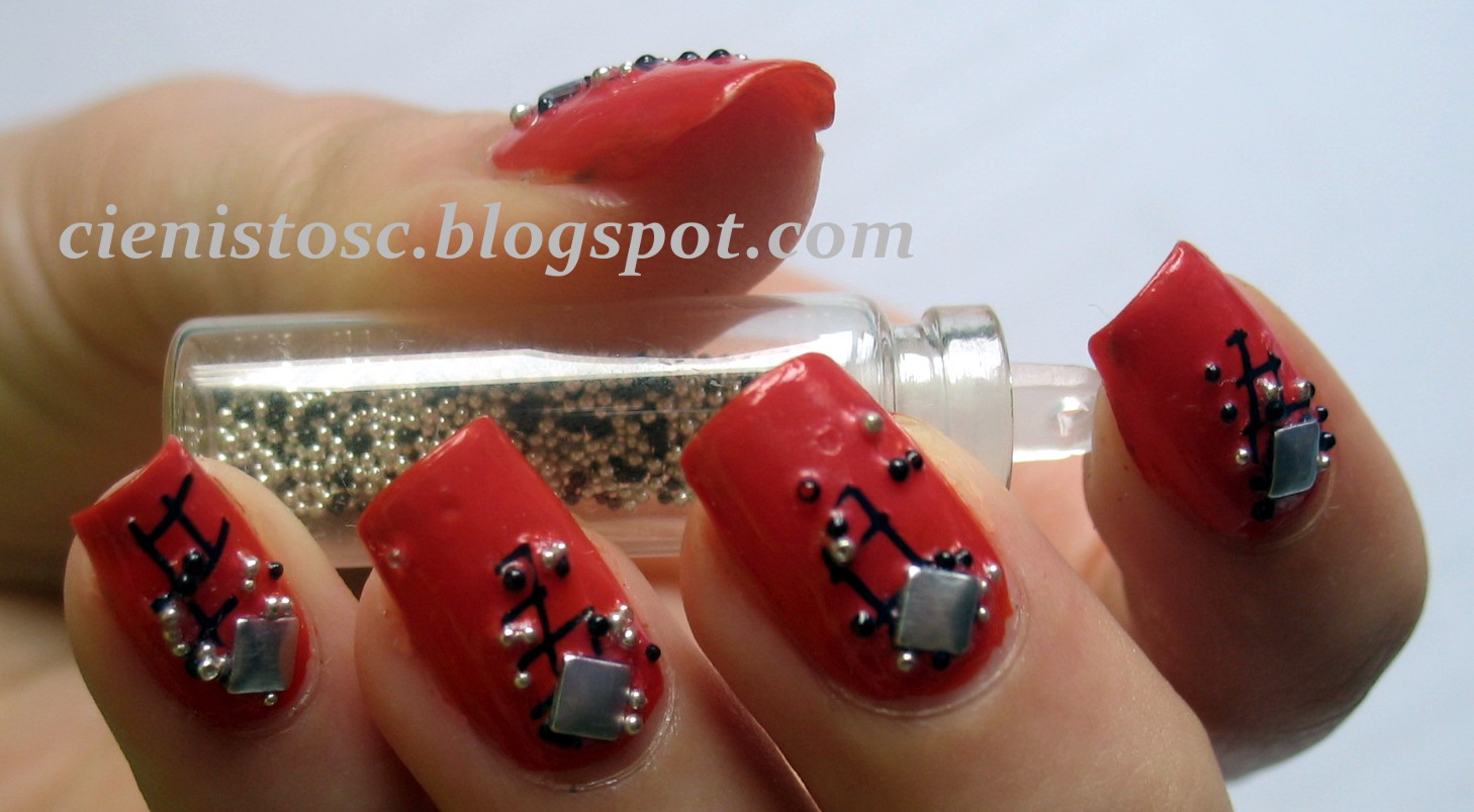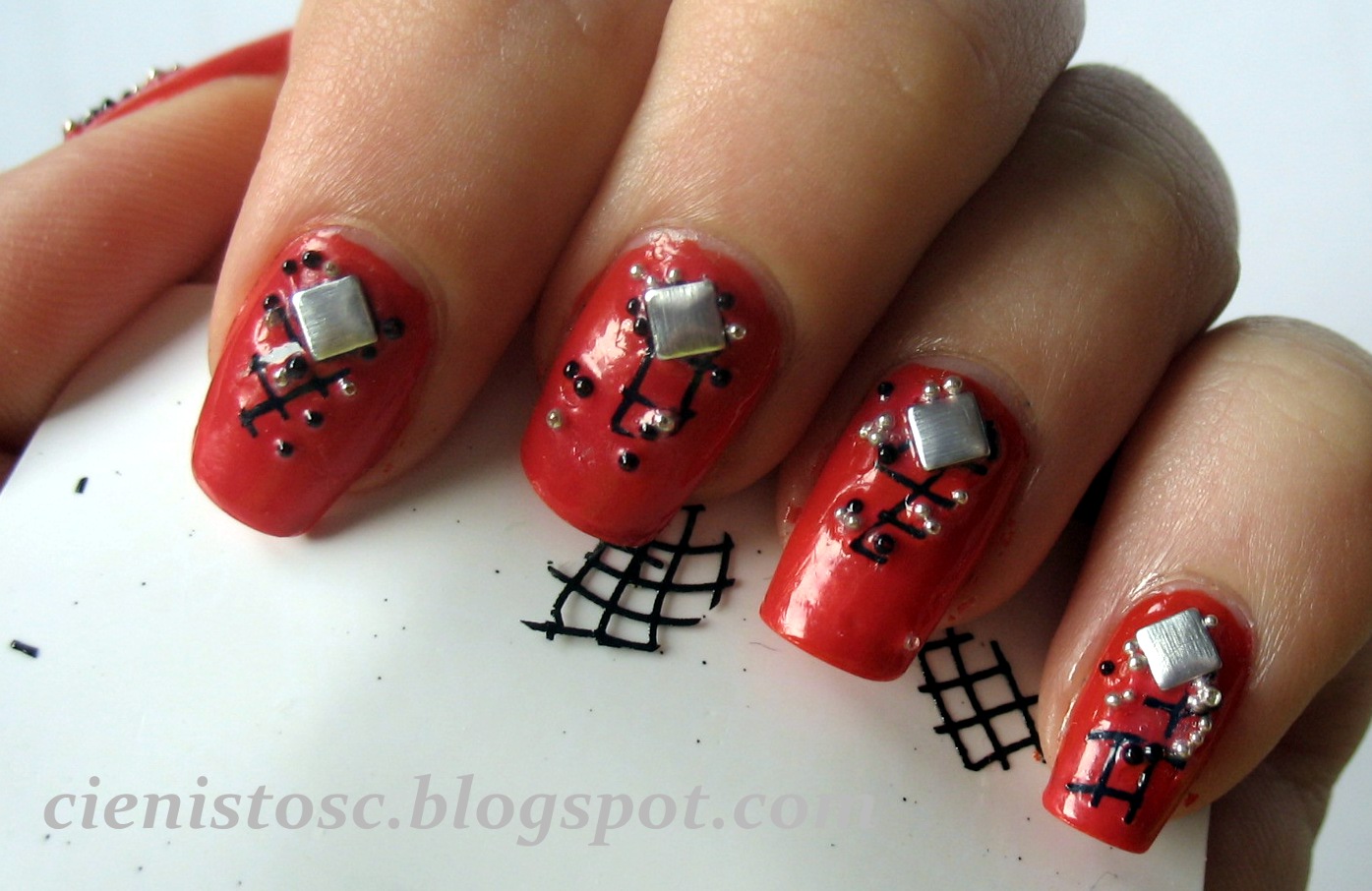 czerwony, są ćwieki 😉 Bardzo spodobało mi się to zdobienie, na żywo wygląda fenomenalnie 😉