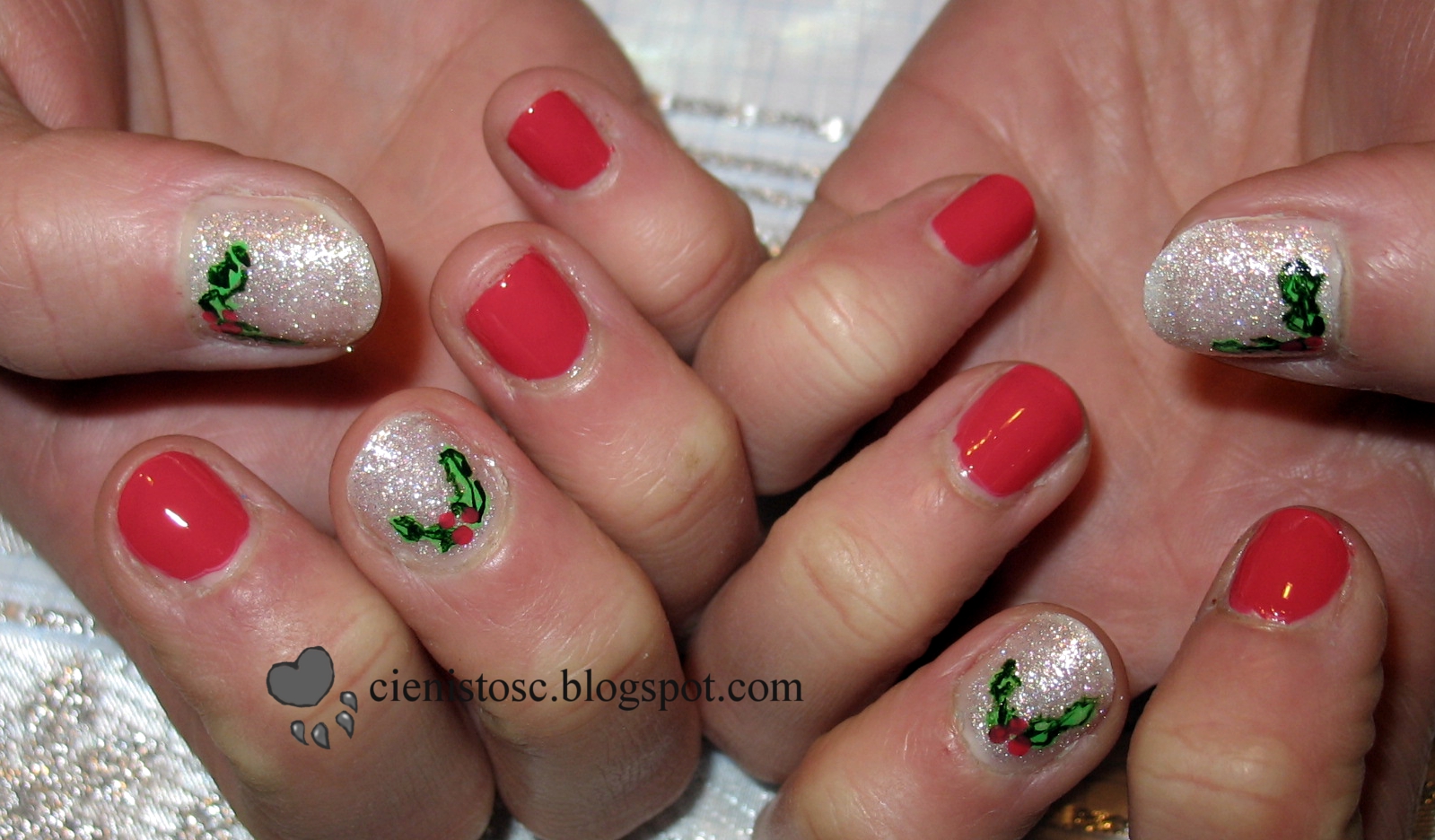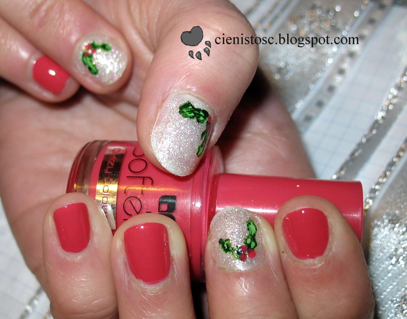 akrylowymi, a kuleczki owoców lakierem. Białe tło, to szałowy Lovely Snow Dust.