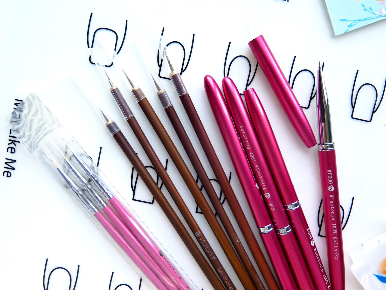 Moim faworytem są jednak pędzelki „Berry wine” – super cienkie, nieco dłuższe i dość elastyczne. Doskonałe do malowania cieniutkich linii i detali. Wow! Te pędzelki to dla mnie prawdziwa rewolucja! Będę płakać, jak się zużyją! Dlatego chucham na nie i dmucham i aż boję się używać, takie są genialne!