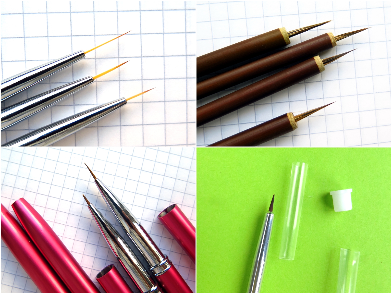 Najbardziej lansiarskie i szałowe są cztery pędzle Kolinsky – z naturalnych włosiem i metalową rączką odporną na działanie acetonu. Mają nawet eleganckie zakrętki! Włosie jest dosyć krótkie i przycięte w bardzo wąski szpic, dzięki czemu precyzja działania jest wysoka.