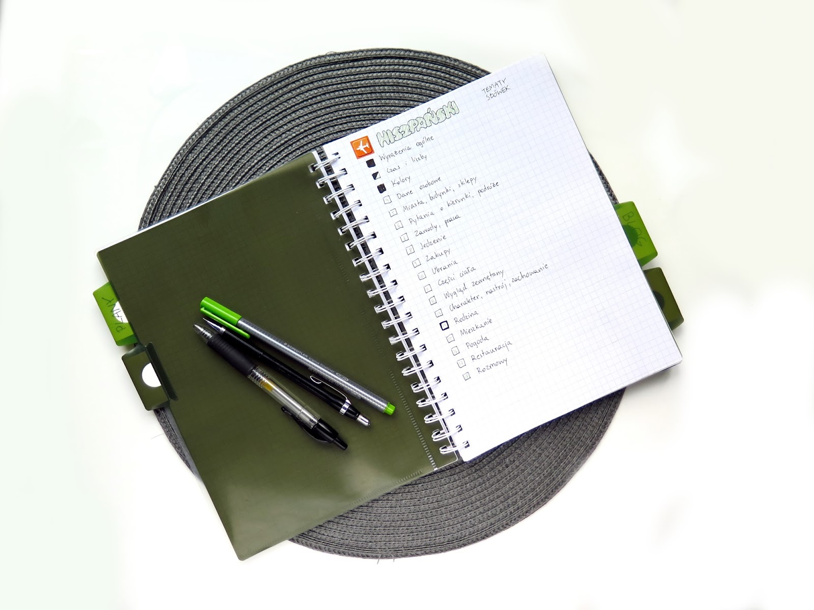 Korzystam ze zwykłego kołonotatnika w szarą kratkę,