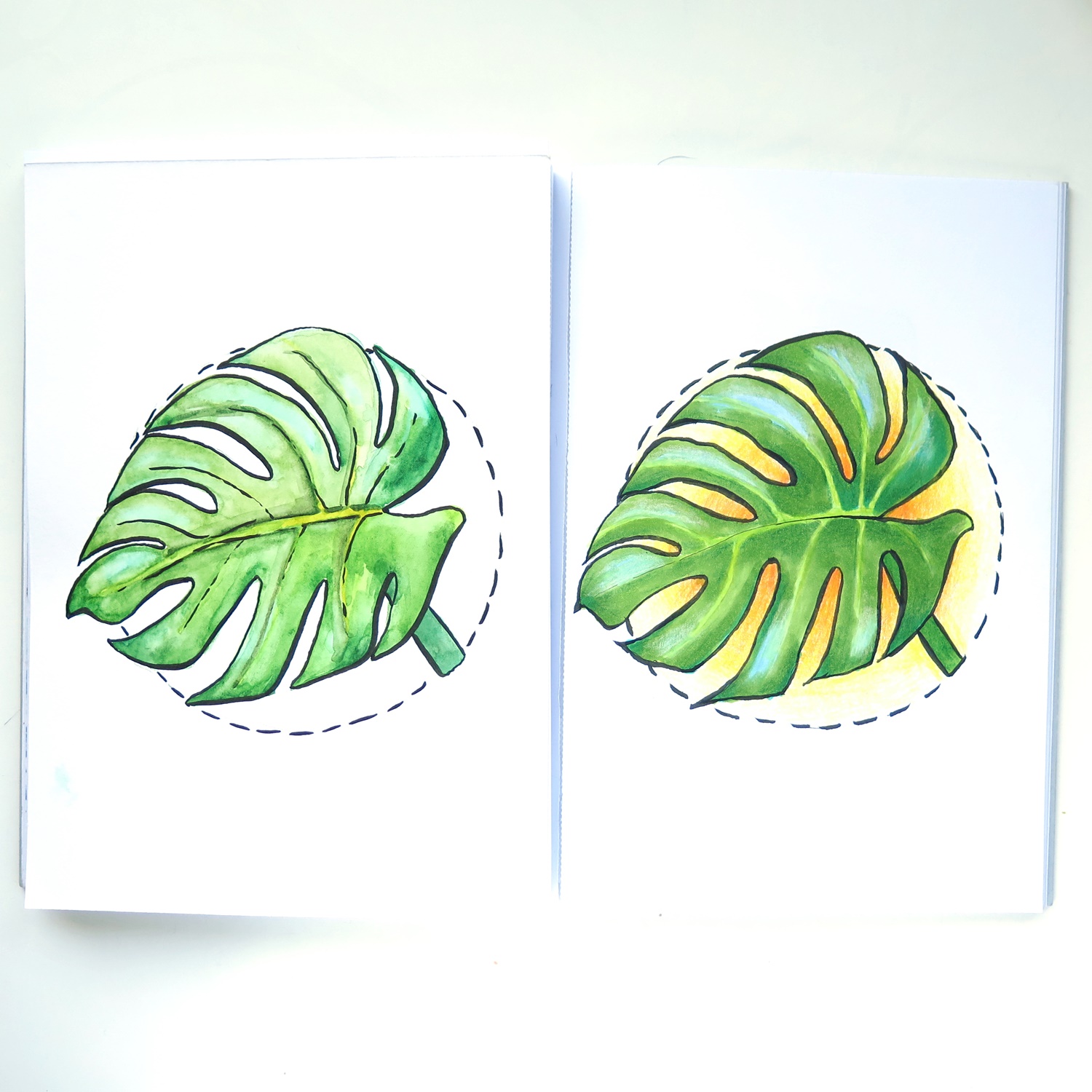 Absolutny hit tego roku, najmodniejsza roślina! Ale nie ma się co dziwić, bo jest szalenie ładna 🙂 Tutaj pokolorowałam ilustrację najpierw markerami, a potem dodałam kredki – takie połączenie daje ciekawy, fajny efekt, a do tego nie zajmuje tyle czasu, co kolorowanie samymi kredkami.