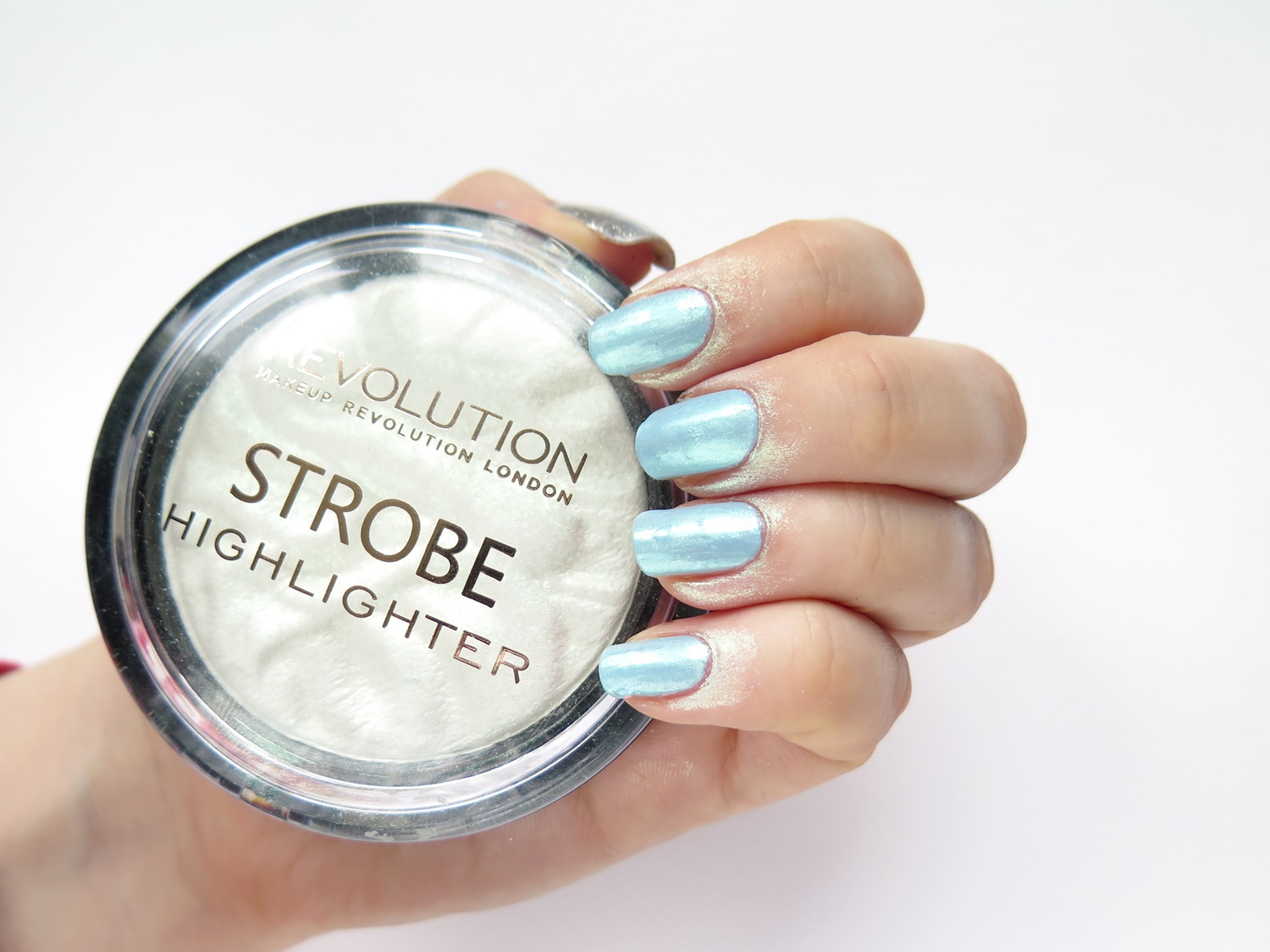 Na spotkaniu blogerek MAYbe Beauty dostałam zachwycający rozświetlacz Make Up Revolution Strobe w odcieniu “Flash”. Jestem nim totalnie oczarowana, ponieważ… opalizuje na zielono! Wygląda tak nieoczekiwanie, że zaczęłam się zastanawiać, czy można by go wykorzystać także w zdobieniu paznokci. Może uda mi się uzyskać blask zbliżony do efektu syrenki? Zobaczmy!