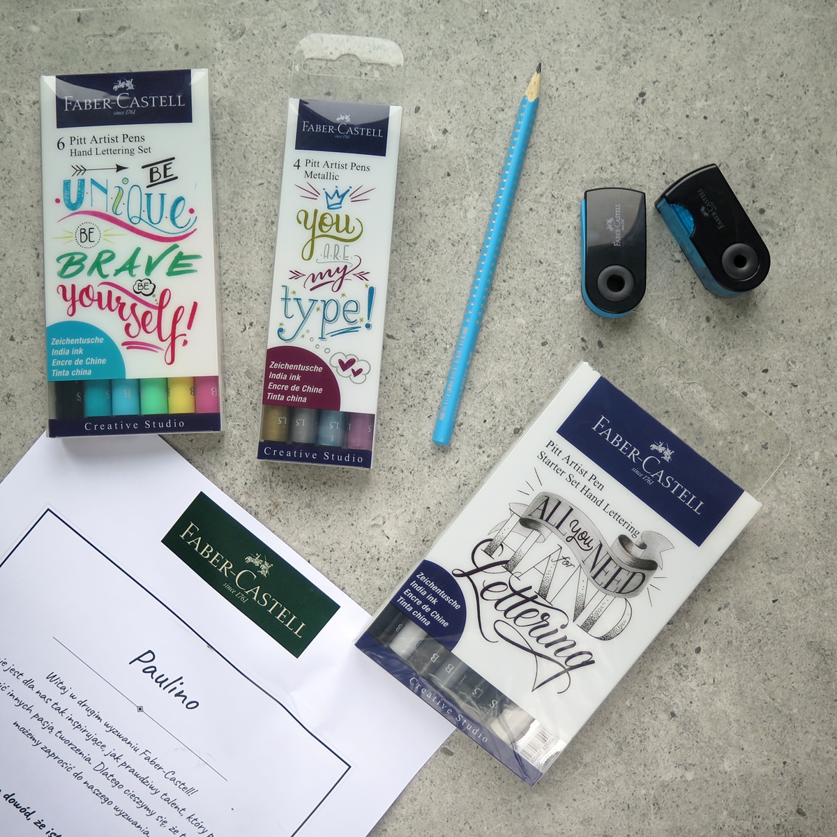 Dziękuję przedstawicielom Faber Castell za zaproszenie do udziału w wyzwaniu i za ten fantastyczny prezent z akcesoriami do brush letteringu. Cieszę się, że miałam wreszcie okazję wprobować popularne pisaki Pitt Artist Pen, są naprawdę fajne i pewnie za jakiś czas kupię ich więcej.