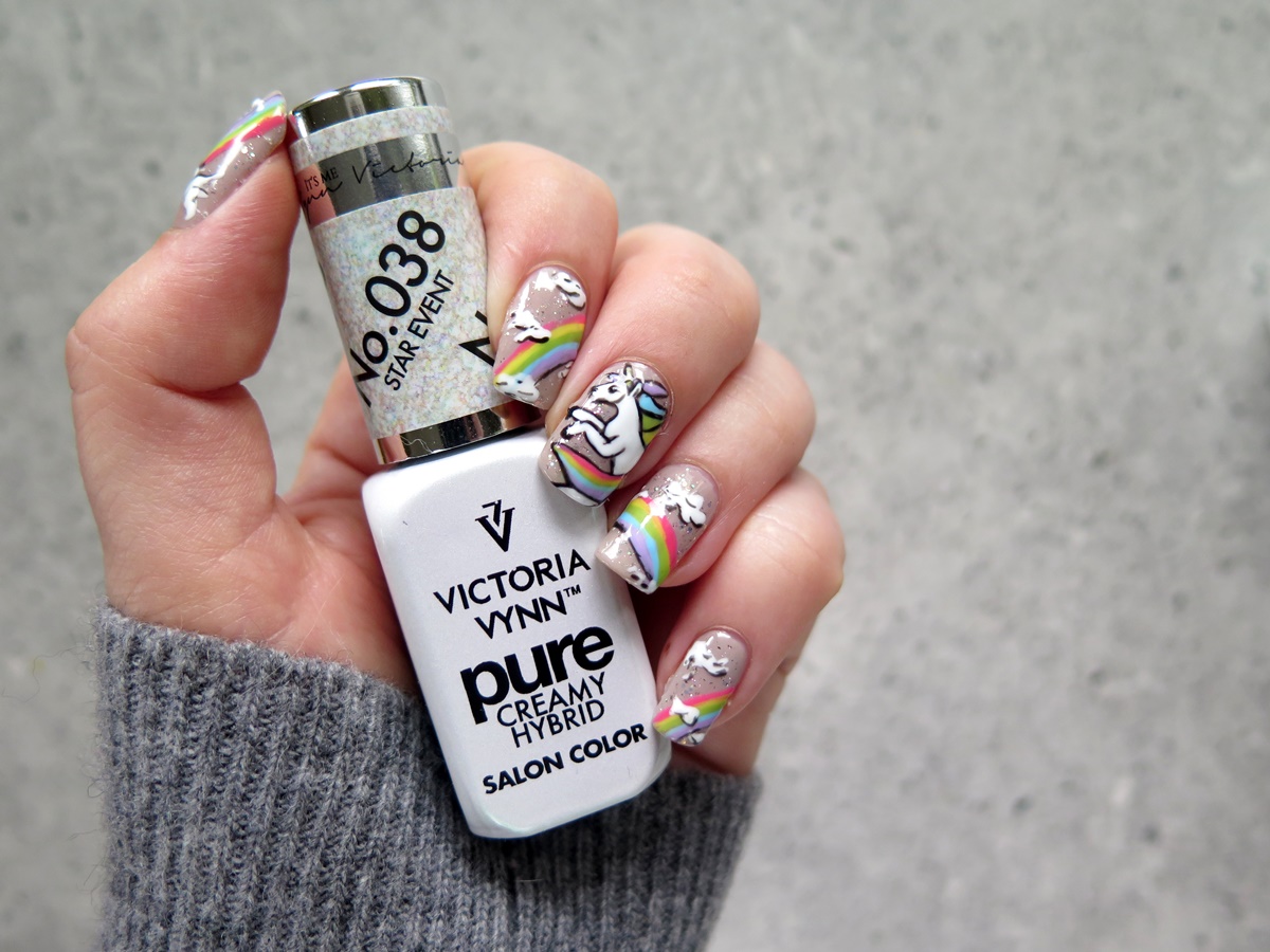 | Najnowsze zdobienie paznokci z tęczą i jednorożcem – malowane lakierami hybrydowyi Victoria Vynn PURE |
